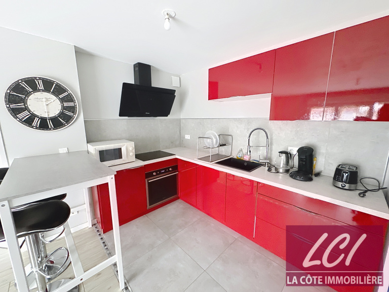 A 2 pas du port et des commerces du centre ville, situation calme et pratique pour cet appartement T2 de 43,51m² en rez-de-jardin d'une résidence proche de la nature. Belle pièce de vie avec cuisine ouverte aménagée, chambre avec salle de bains-wc attenante, cellier et place de parking.