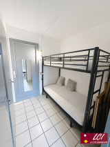 A 150mètres de plage et des commerces, agréable studio cabine disposant d'une terrasse intime et d'une place de parking privative. Entrée-cabine, pièce de vie avec belle cuisine aménagée et équipée, salle d'eau, wc indépendant. Très bien situé, d'une capacité de 4 couchages et en très bon état, au sein d'une agréable résidence à taille humaine et faibles charges.