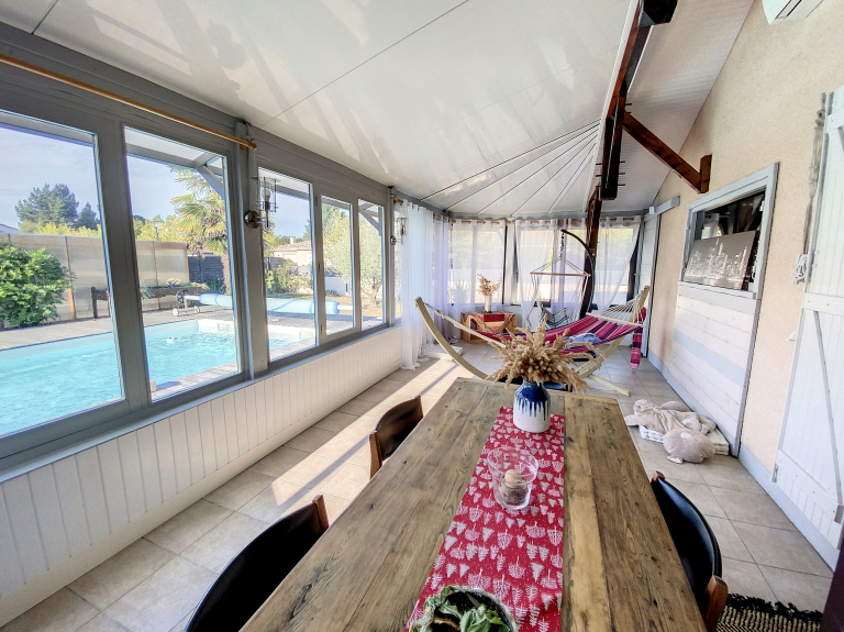 Au sein d'un secteur calme et résidentiel de cazaux, proche des commerces et écoles, cette maison de plain pied sur un terrain de 850m² (avec piscine et abris divers pour le rangement) vous séduira par son très bon état d'entretien et son ambiance chaleureuse. Séjour spacieux + très agréable véranda, 3 chambres + bureau. Classe énergie : B.